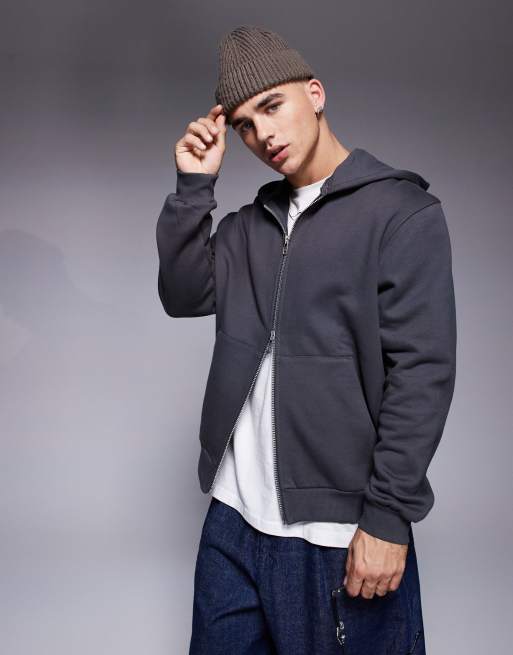 ASOS DESIGN – Hochwertige Oversize-Kapuzenjacke aus schwerem Stoff in verwaschenem Grau, 400 g/m²