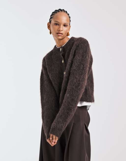 ASOS DESIGN – Hochwertige Strickjacke aus grober Alpakawolle in Schokobraun