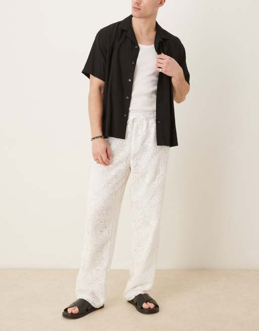ASOS DESIGN – Hochwertige weite Hose aus Häkelstrick in Weiß