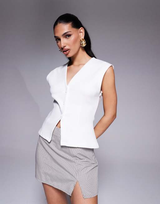 ASOS DESIGN – Hochwertige Weste aus Ponté in Elfenbein