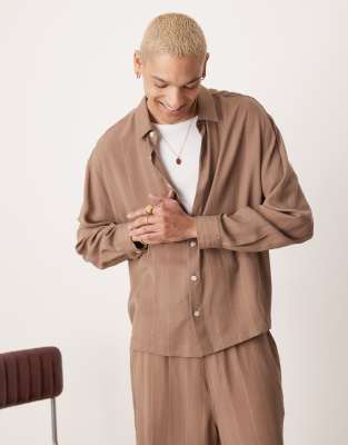 ASOS DESIGN – Hochwertiges Oversize-Hemd in Braun gestreift mit kurzem Schnitt, Kombiteil