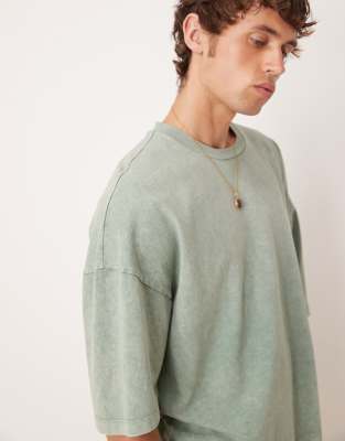 ASOS DESIGN – Hochwertiges Oversize-T-Shirt in verwaschenem Grün aus schwerem Material