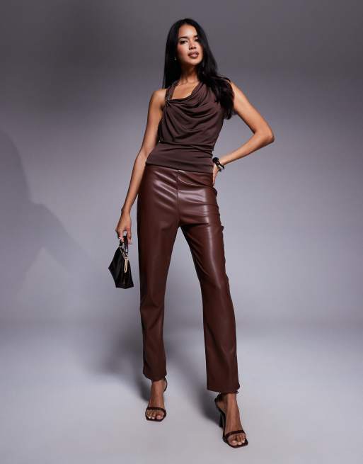 ASOS DESIGN – Hose aus Kunstleder in Braun