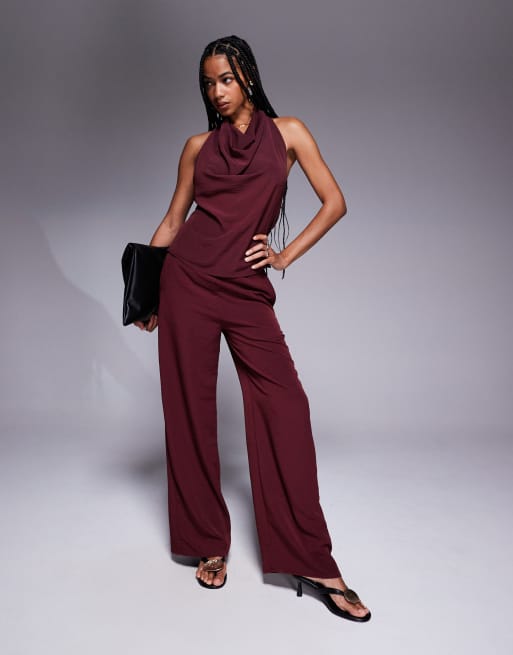 ASOS DESIGN – Hose in Burgunderrot mit weitem Bein, Kombiteil