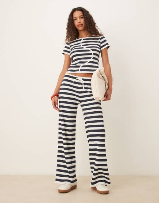 ASOS DESIGN – Hose in Marineblau und Weiß gestreift mit weitem Bein, Kombiteil
