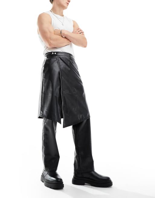 ASOS DESIGN – Hose in schwarzer Lederoptik mit Rockdetail