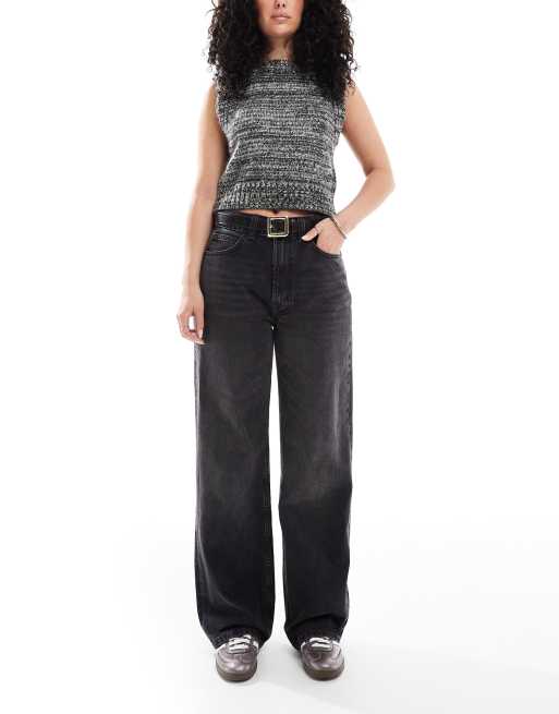 ASOS DESIGN Hourglass – Weite Dad-Jeans in verwaschenem Schwarz