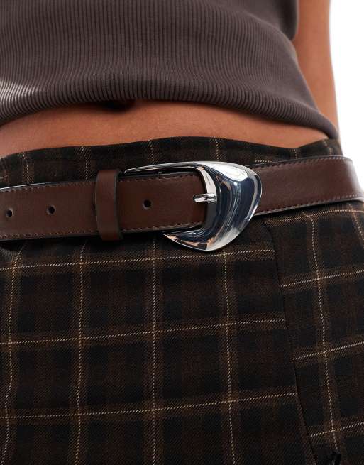 ASOS DESIGN – Hüft- und Taillengürtel aus Denim in Schokobraun mit abgeschrägter Schnalle