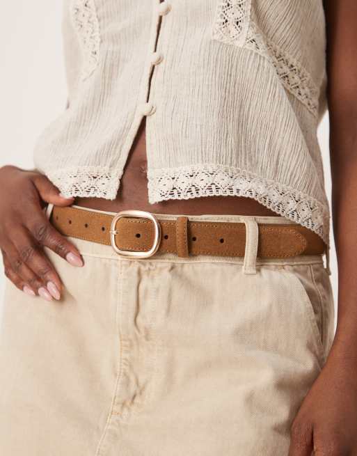 ASOS DESIGN – Hüft- und Taillengürtel für Jeans in Hellbraun aus Wildlederimitat mit eckiger Schnalle