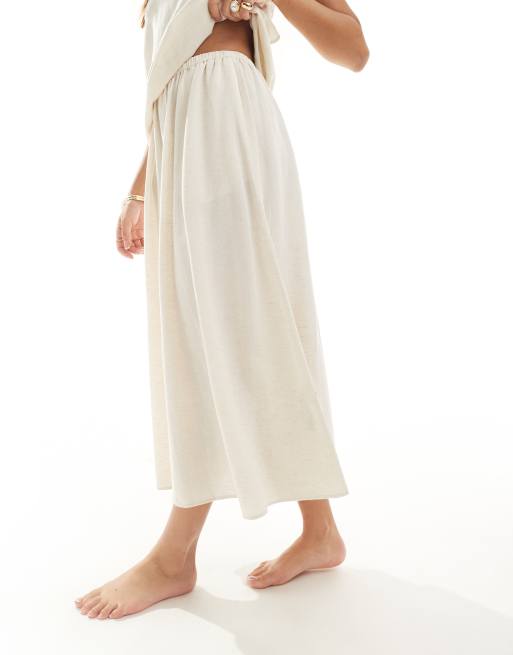 ASOS DESIGN – Isabel – Mix & Match – Midi-Strandrock in neutralfarbener Leinenoptik mit A-Linien-Schnitt