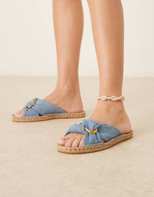 ASOS DESIGN – Jade – Geknotete Espadrille-Pantoletten in Blau aus Denim