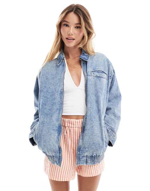 ASOS DESIGN – Jeans-Bomberjacke in verwaschenem Mittelblau