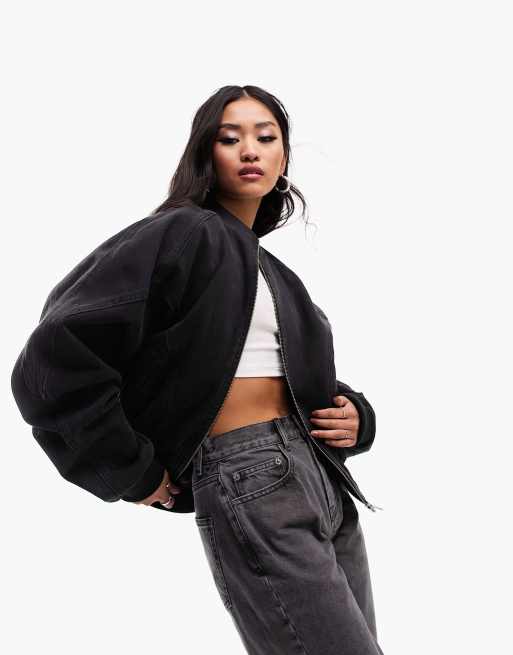 ASOS DESIGN – Jeans-Bomberjacke in verwaschenem Schwarz