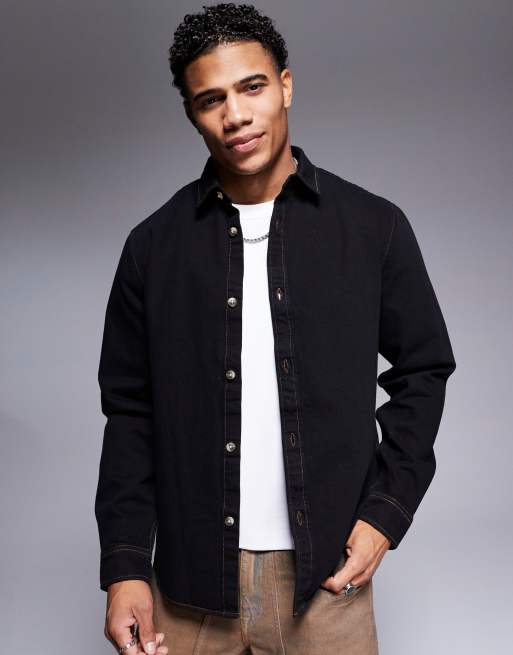 ASOS DESIGN – Jeans-Hemdjacke in verwaschenem Schwarz