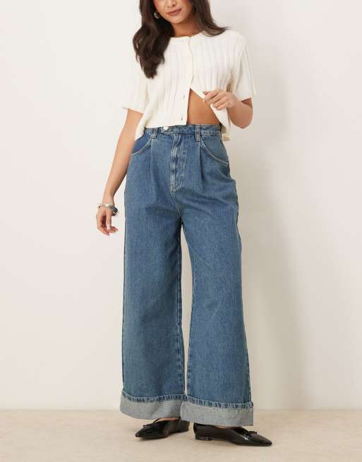 ASOS DESIGN – Jeans in Blau mit superweitem Bein und Umschlag