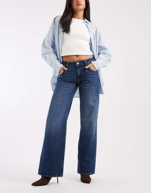 ASOS DESIGN – Jeans in dunklem Mittelblau mit niedrigem Bund und weitem Schnitt