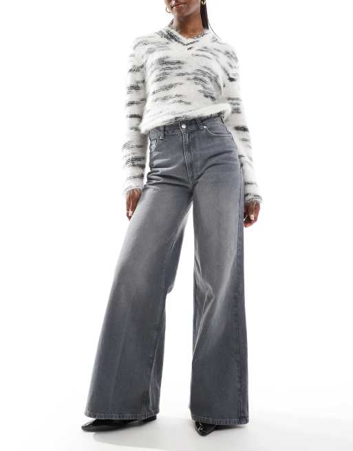 ASOS DESIGN – Jeans in Grau mit mittelhohem Bund und weitem Schnitt