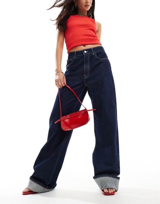 ASOS DESIGN – Jeans in Indigoblau mit Kontrastnaht und Umschlag