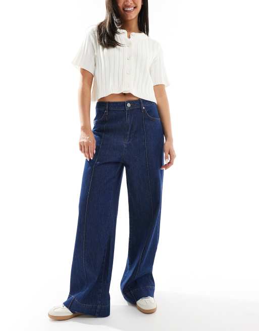 ASOS DESIGN – Jeans in Indigoblau mit weitem Schnitt und Biesen