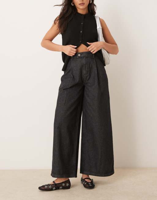 ASOS DESIGN – Jeans in verwaschenem Schwarz mit Bundfalten