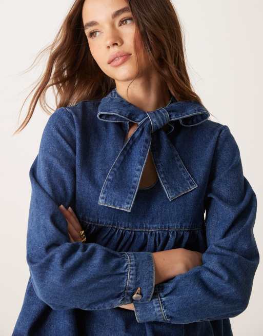 ASOS DESIGN – Jeans-Oberteil in Indigoblau mit Schleife am Ausschnitt