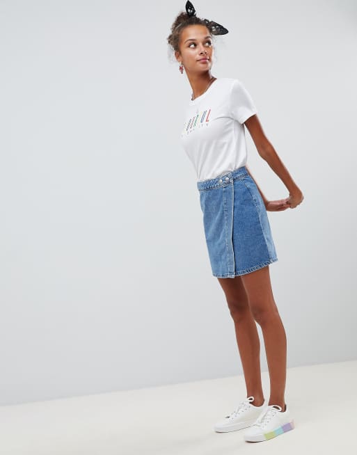 ASOS DESIGN – Jeans-Wickelrock in Stonewash-Blau