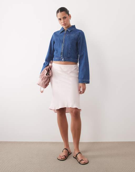 ASOS DESIGN – Jeansjacke in Indigoblau mit durchgehendem Reißverschluss