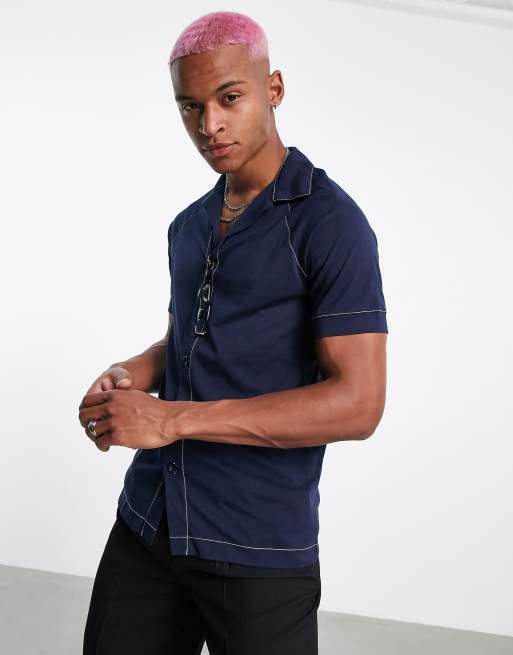 ASOS DESIGN – Jersey-Hemd in Marineblau mit Kontrastnähten