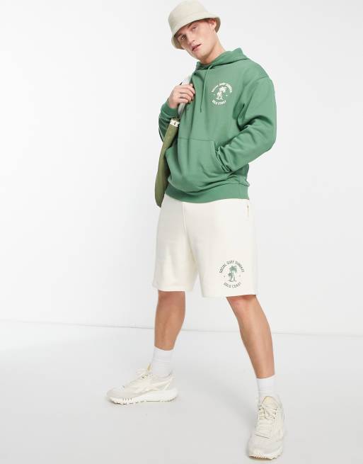 ASOS DESIGN – Jersey-Shorts in Beige mit Oversize-Schnitt und Surf-Logoprint, Kombiteil