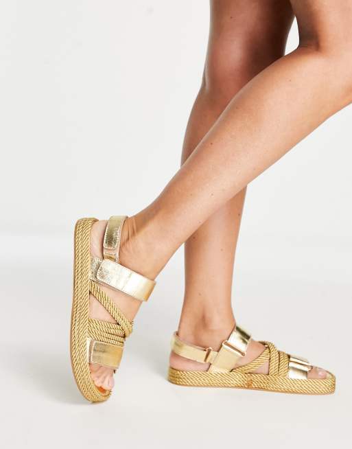 ASOS DESIGN – Joel – Hochwertige Ledersandalen in Gold mit Kordel-Details
