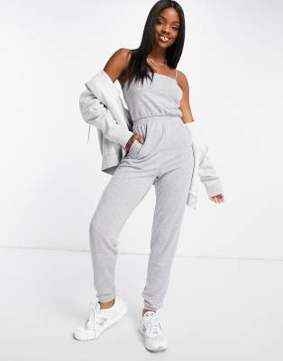 ASOS DESIGN ‑ Jogging-Jumpsuit aus Sweatstoff in Grau mit schmalen Trägern