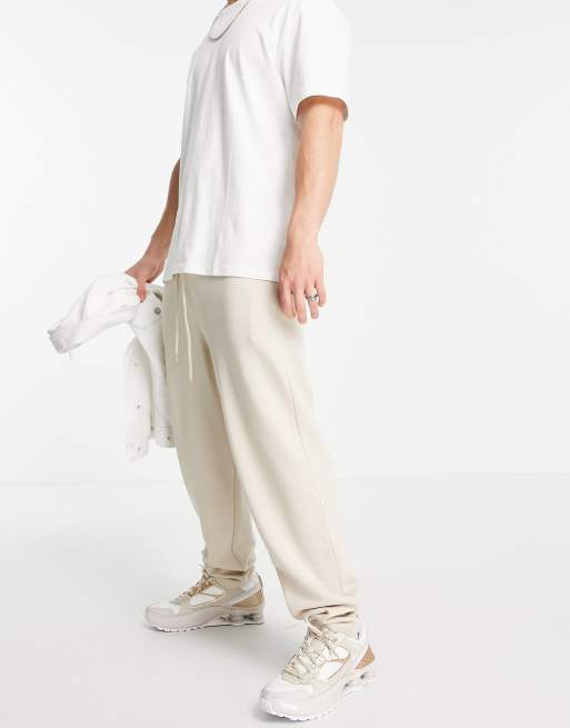 ASOS DESIGN – Jogginghose aus Jersey in Beige mit weitem Bein