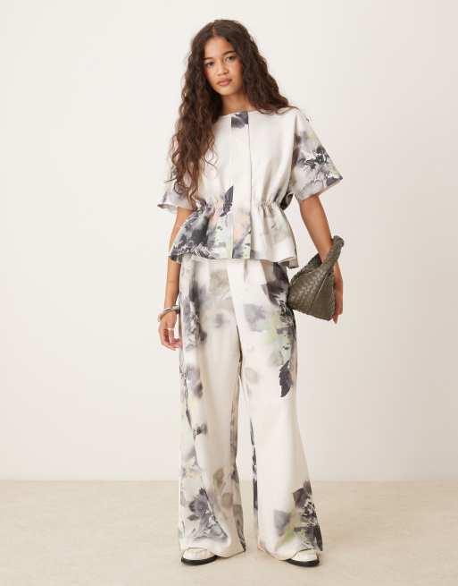 ASOS DESIGN – Jogginghose aus Material in Neopren-Optik mit Blumenmuster und weitem Bein, Kombiteil