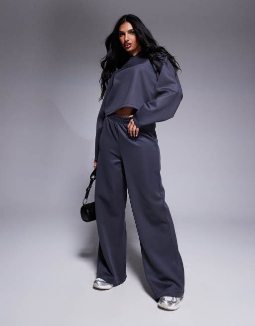 ASOS DESIGN – Jogginghose aus neoprenartigem Material in Schiefergrau mit weitem Bein, Kombiteil