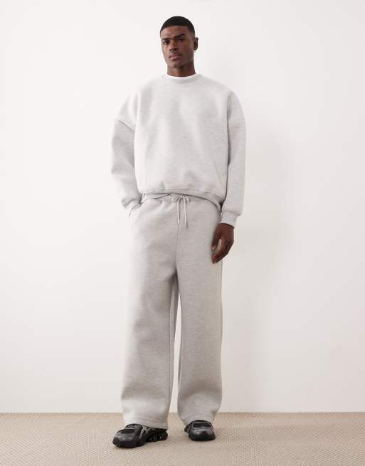 ASOS DESIGN – Jogginghose aus schwerem, neoprenartigem Material in meliertem Grau mit weitem Bein