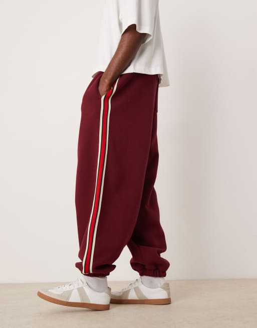 ASOS DESIGN – Jogginghose in Burgunderrot mit weitem Ballon-Schnitt und Zierstreifen
