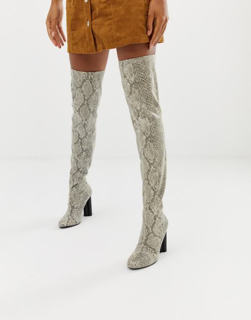 ASOS DESIGN – Kalise – Elastische Overknee-Stiefel mit Schlangenmuster