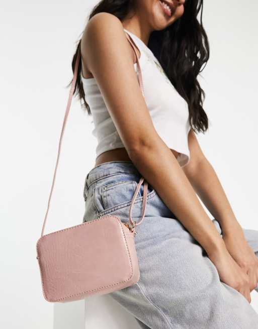 ASOS DESIGN – Kameratasche zum Umhängen in zartrosa Kroko-Optik