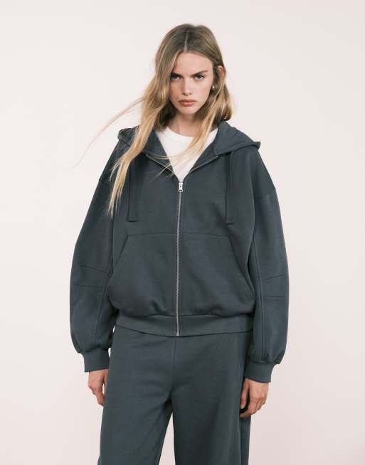 ASOS DESIGN – Kapuzenjacke in Anthrazit mit durchgehendem Reißverschluss und Ballonärmeln, Kombiteil