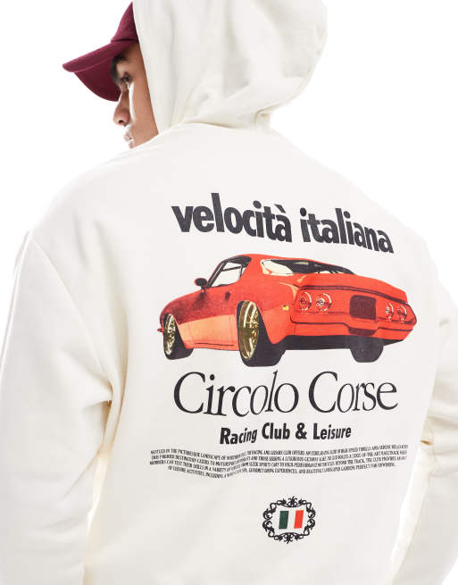 ASOS DESIGN – Kapuzenpullover in gebrochenem Weiß mit Rückenprint