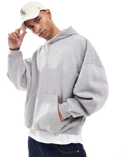 ASOS DESIGN – Kapuzenpullover in Grau meliert mit extremer Oversize-Passform und Ziernaht