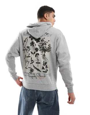 ASOS DESIGN – Kapuzenpullover in Grau meliert mit Rückenprint