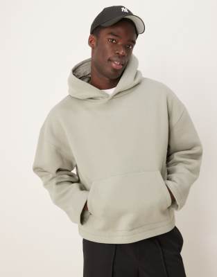 ASOS DESIGN – Kapuzenpullover in Khaki mit festem Saum