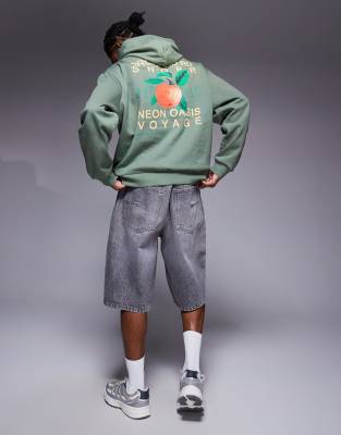 ASOS DESIGN – Kapuzenpullover in Khaki mit Orangen-Rückenprint