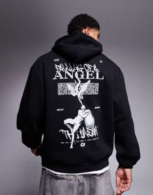 ASOS DESIGN – Kapuzenpullover in Schwarz mit Rückenprint