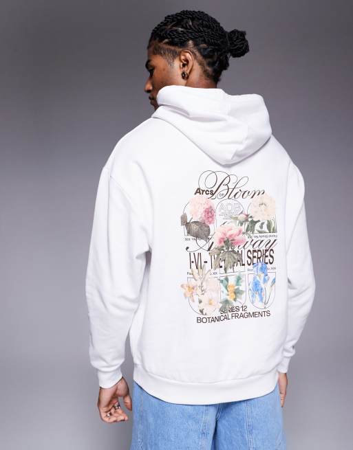 ASOS DESIGN – Kapuzenpullover in Weiß mit Blumenprints
