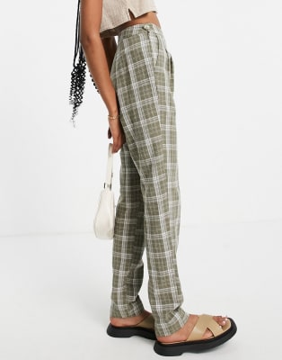 ASOS DESIGN – Kariertes Kombiteil aus Bralette und Hose in Khaki