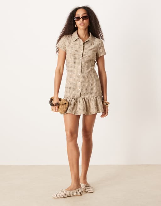 ASOS DESIGN – Kariertes Mini-Hemdkleid mit niedriger Taille