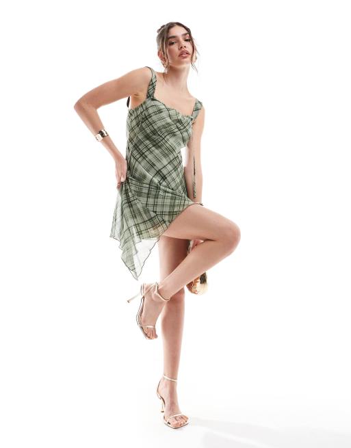 ASOS DESIGN – Kariertes Minikleid mit Wasserfallausschnitt, Zipfelsaum und Schnürdetail