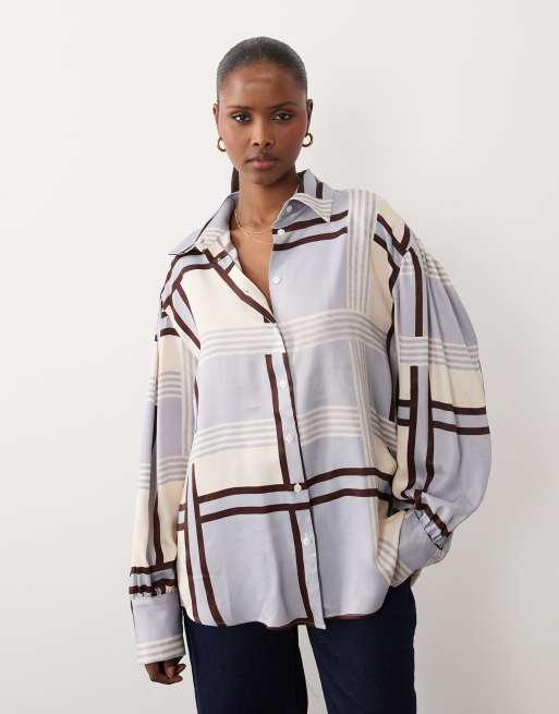 ASOS DESIGN – Kariertes Oversize-Hemd aus Satin, Kombiteil